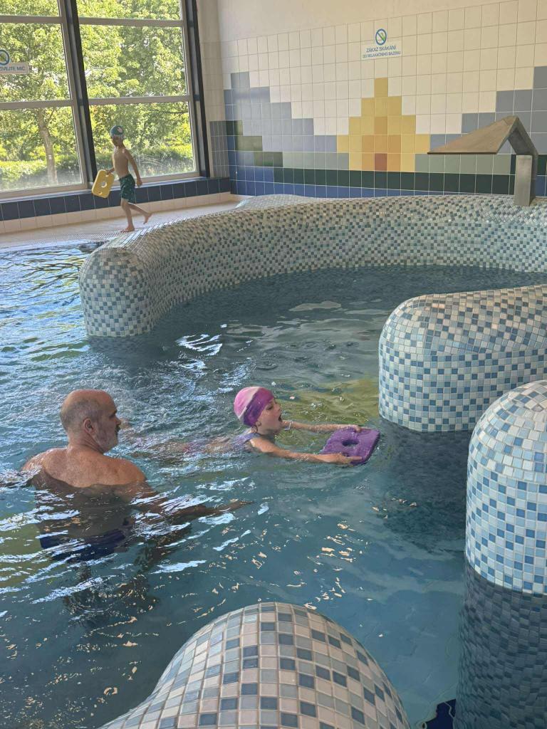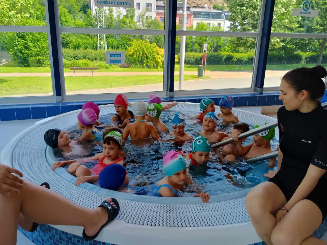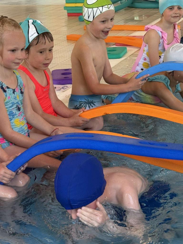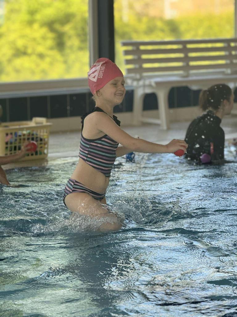 Vodní sporty mě moc baví, náladu mi vždycky spraví. Neznám lepší zábavu, a tak si hned zaplavu. Chvíli prsa, chvíli znak, už to umím - je to tak.